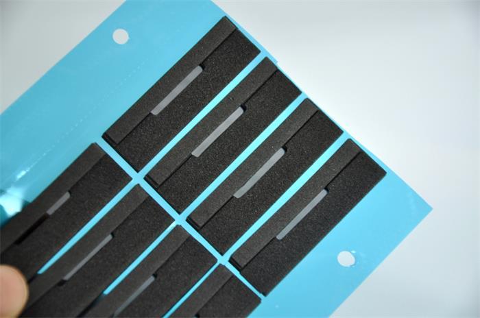 EVA泡棉由EVA發泡復合雙面膠,經過加工沖壓成形,用于電器、機器、數碼等行業中,起到防滑、防滑、緩沖作用。工業中也稱EVA膠墊、EVA泡棉墊。